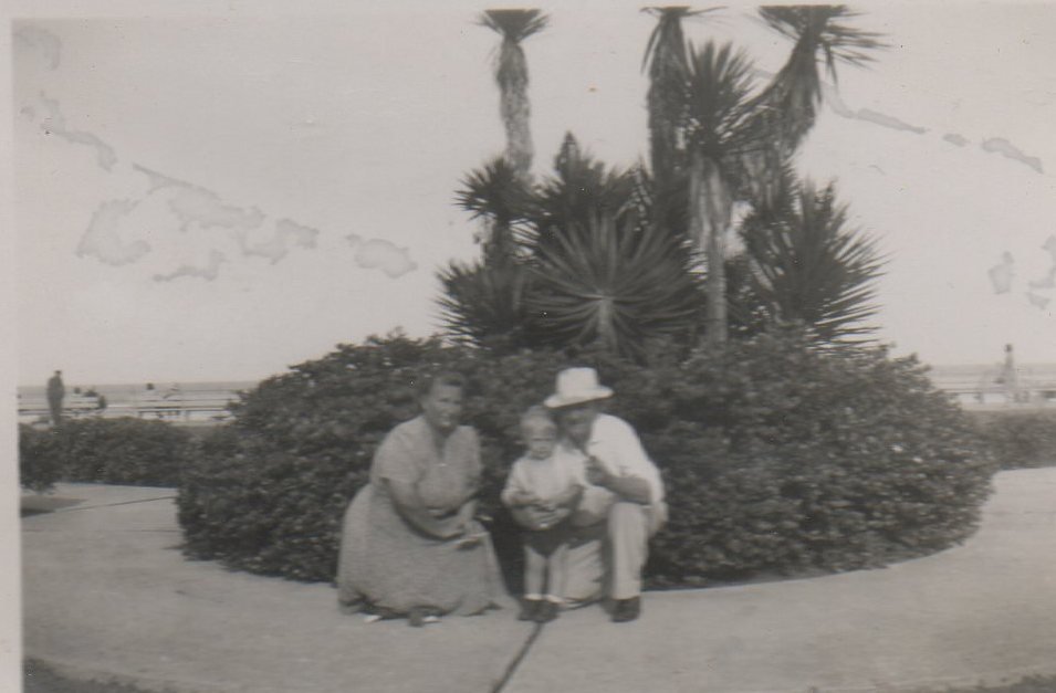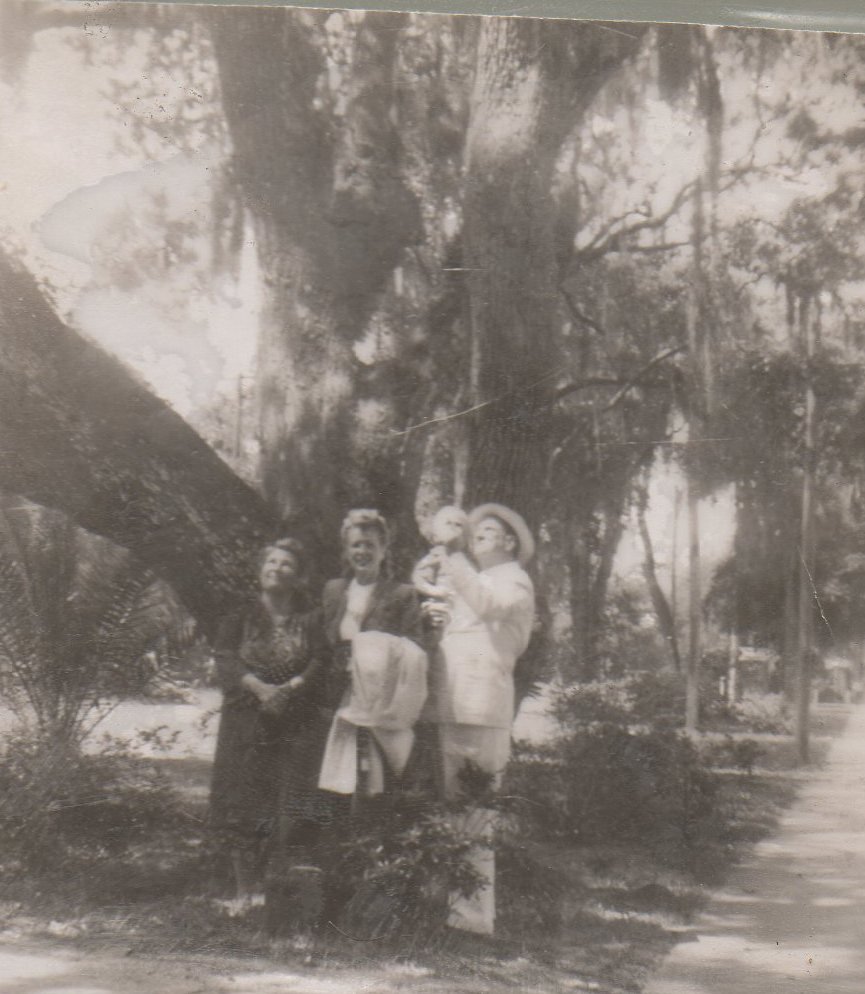 Not sure of this. I believe it is Gramma and Grandpap morse (holding baby billy). Not sure if that is Mom in the middle. I know they lived in Ft Myers Beach (near us) for a couple of years. That looks like a Banyan tree behind them.
