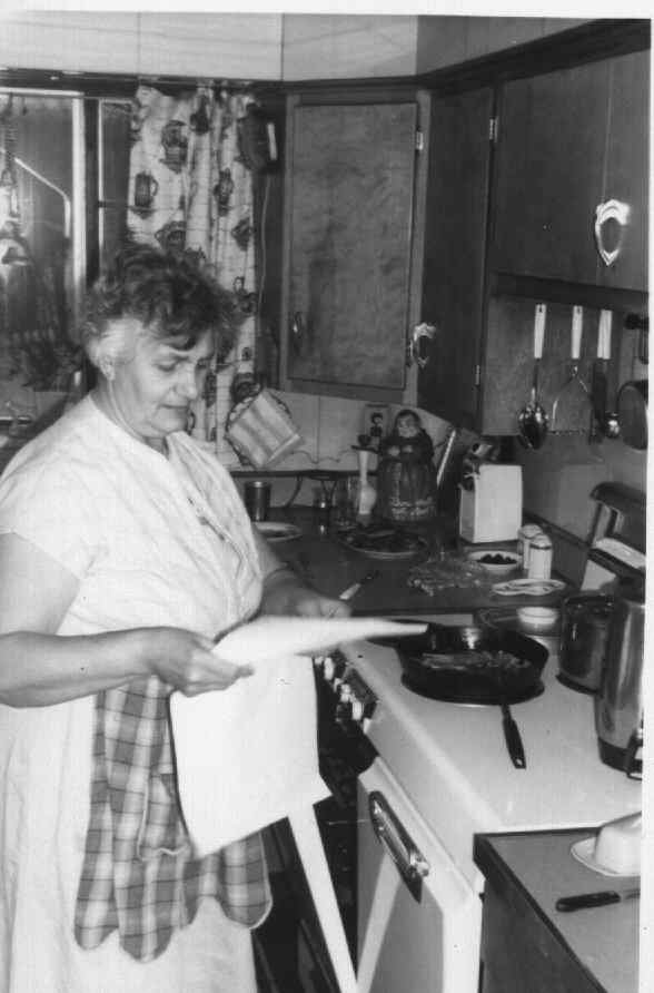Gramma Santoro in her kitchen. On Sunday mornings She would make Italian meatballs with 3 different kinds of meat. I still remember the smell.