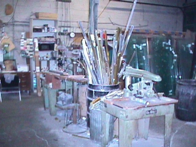 Inside Dad's shop. Machinery for cutting mirrors and aluminum frames for sliding doors or batroom tub/shower doors. They worked closely with the North Suburban Homebuilders Association, which Frank was President of for many years. They tried their hand at homebuilding, made a bunch of money, then got out of the game before the housing crunch of the 80s.