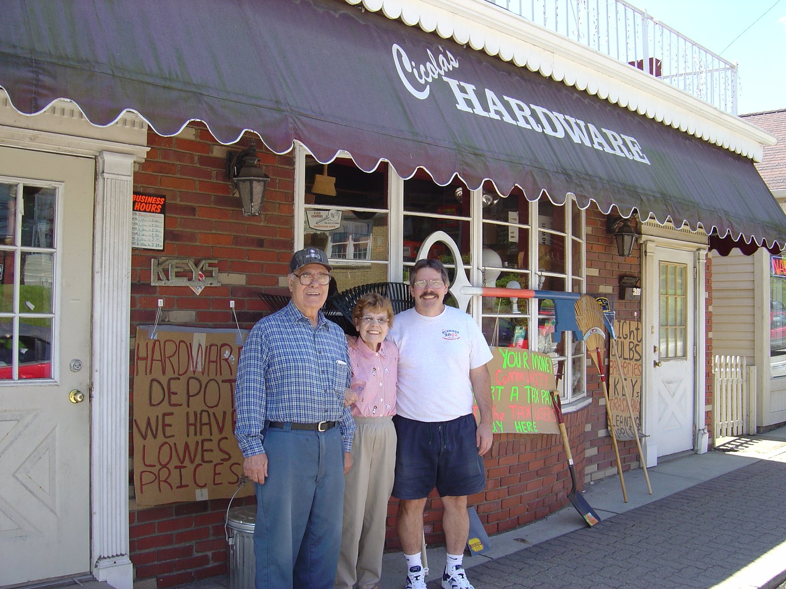 Cicola's hardware was right next door to the little house. John and Audrey (?) Ciccola were wonderful people! Their son John Jr is at the right.