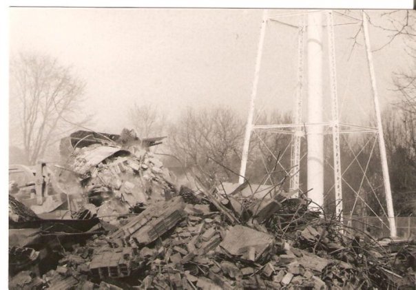 Not sure what the rubble pile is, likely part of the elementary school when they tore it down. This is the famous Blawnox watertower. Sad to admit I was scared to climb it but i did watch out for the police When a friend climbed it. I do not believe it is there any more.
