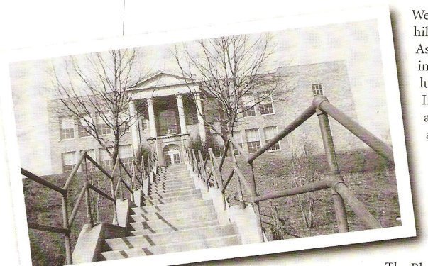 The elemantary school and the 'thousand steps." There was some kind of bush that grew on the hill and attracted tent caterpillars, by the zillions! I remember getting yelled at for sliding down the steps on the crushed caterpillars and ruining my pants! They would occasionally have a controlled fire to eliminate them, but a few years later they were back.