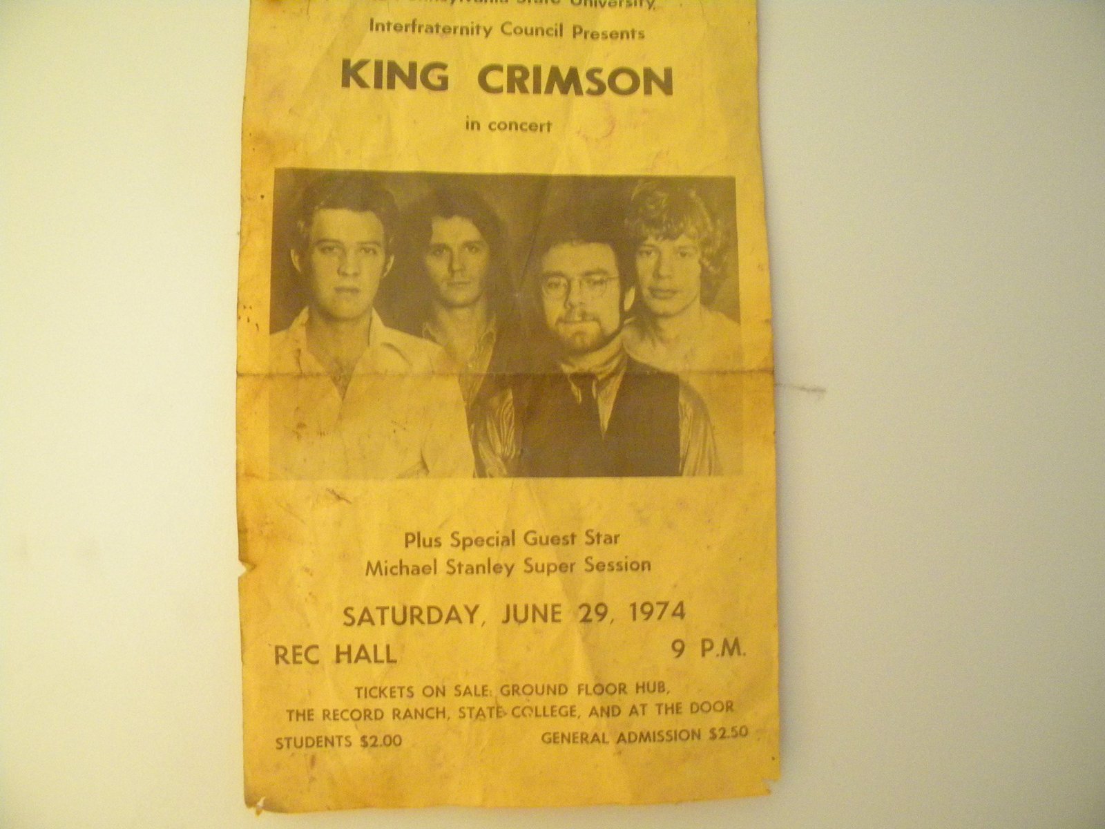 No pix from this concert but this was when I saw King Crimson at Penn State for $4!!!! Actually met Fripp the next morning in the (then) Holiday Inn cafeteria.