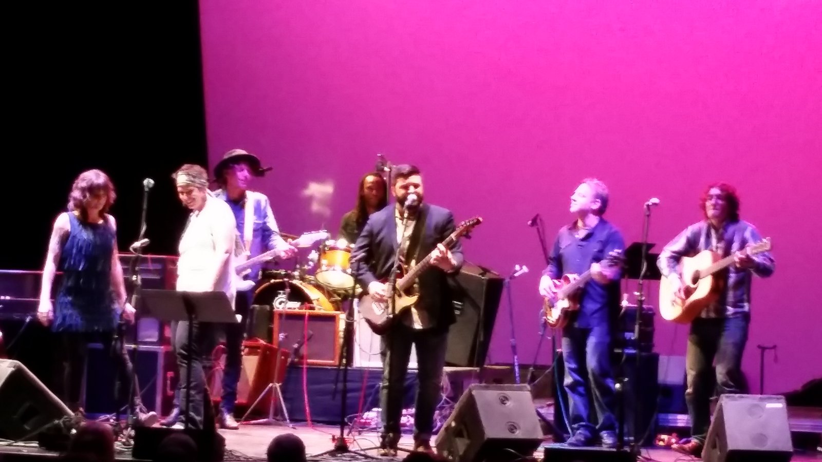 A group of local musicians playing a benefit at the State Theater/