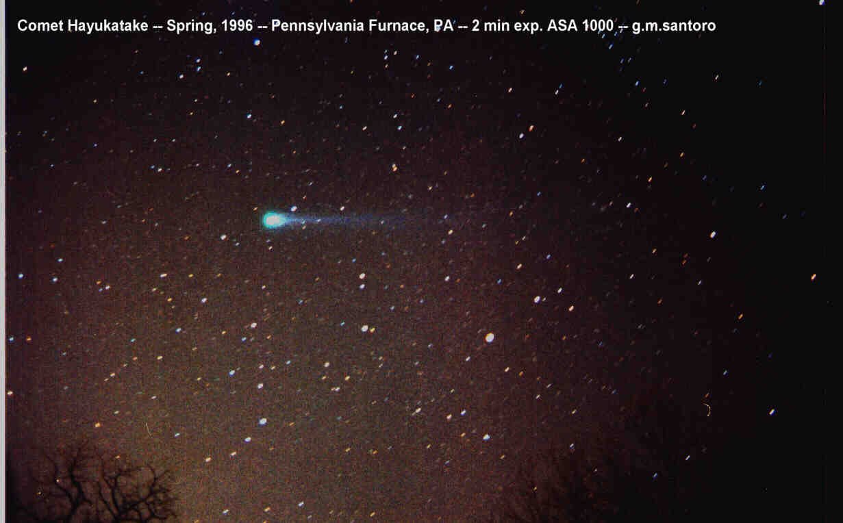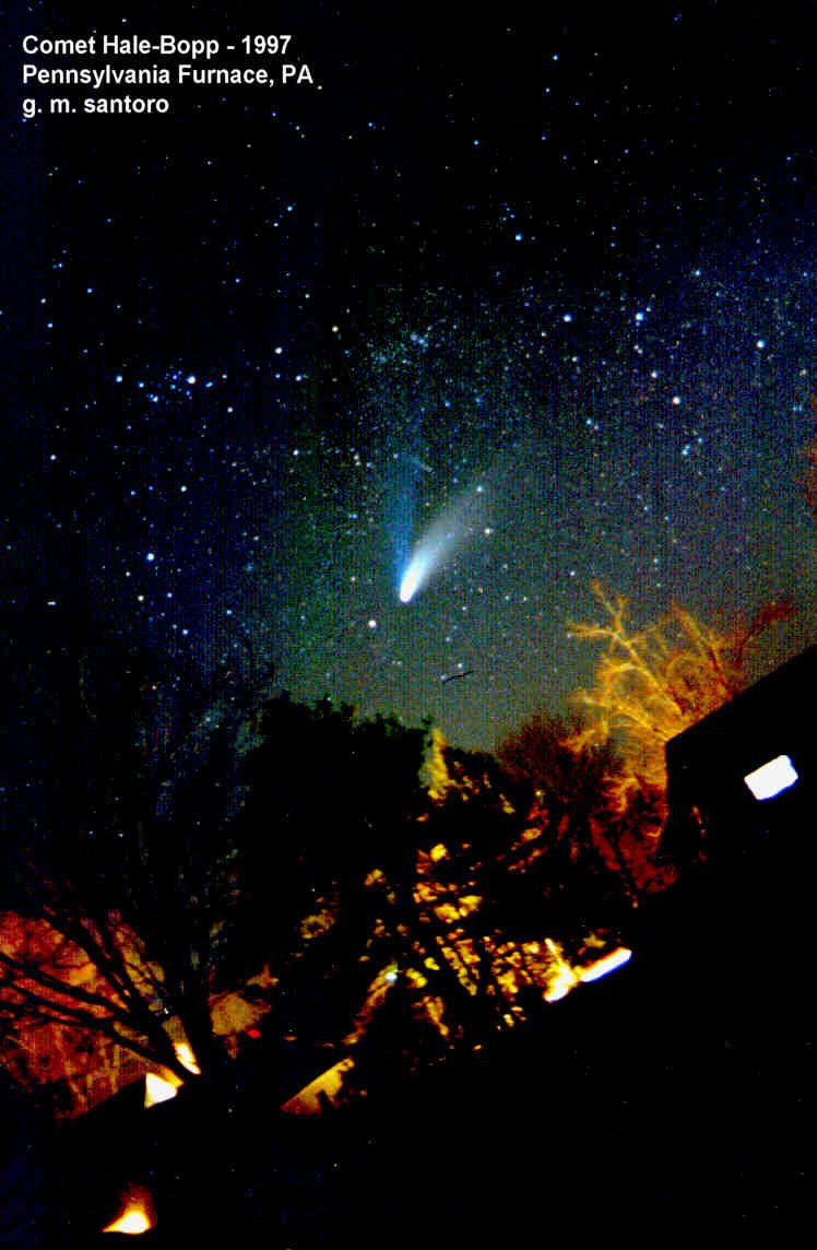 This is a great 5 minute shot of Comet Hale-Bopp from my house in PA. I mounted a 35mm camera on my 2.5 inch refractor and used the refractor to guide it. Worked out great!