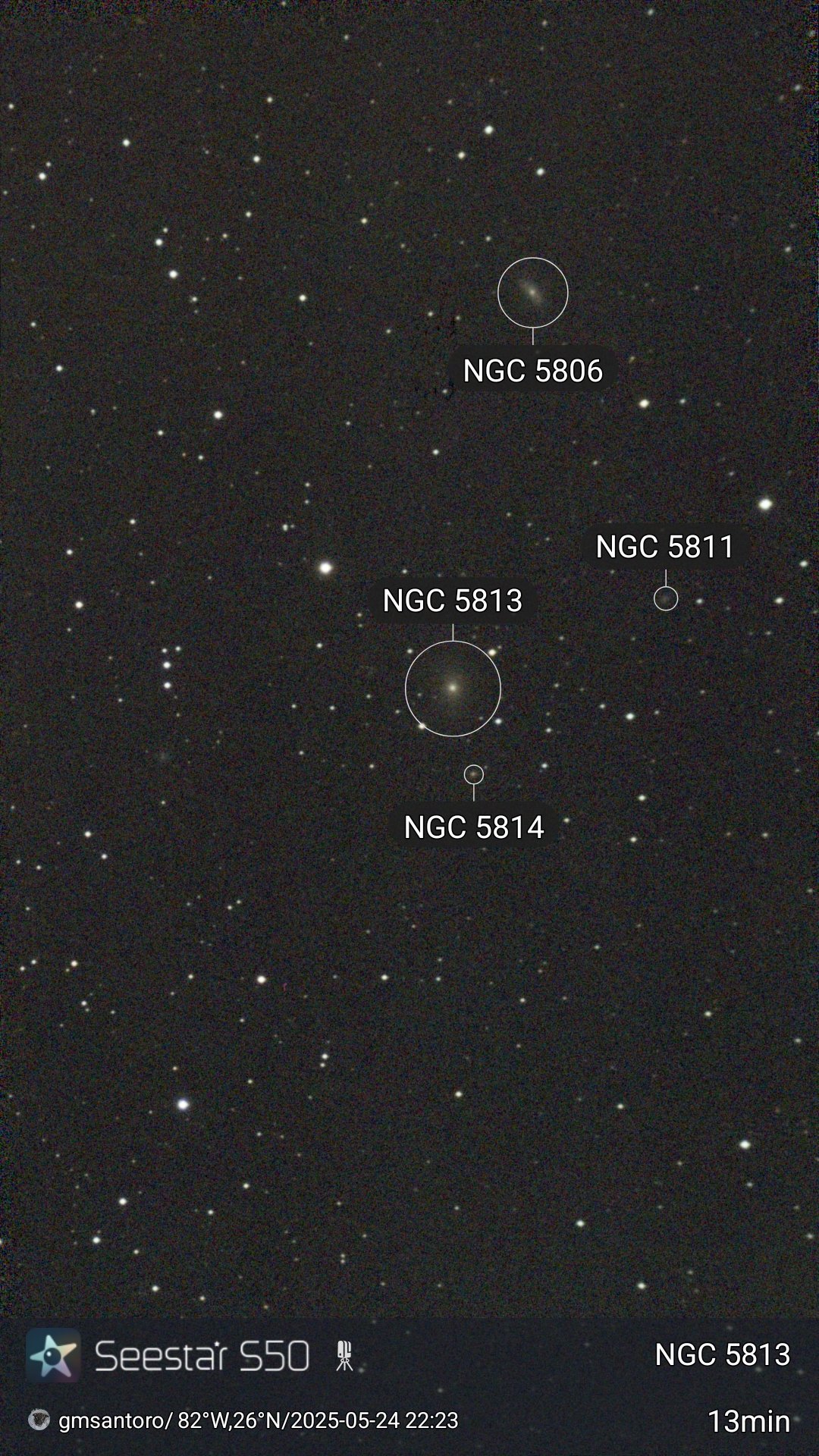 This is a group of galaxies in Virgo. This area is known for clusters of galaxies. With the wide view of the S50 these are easy to take.