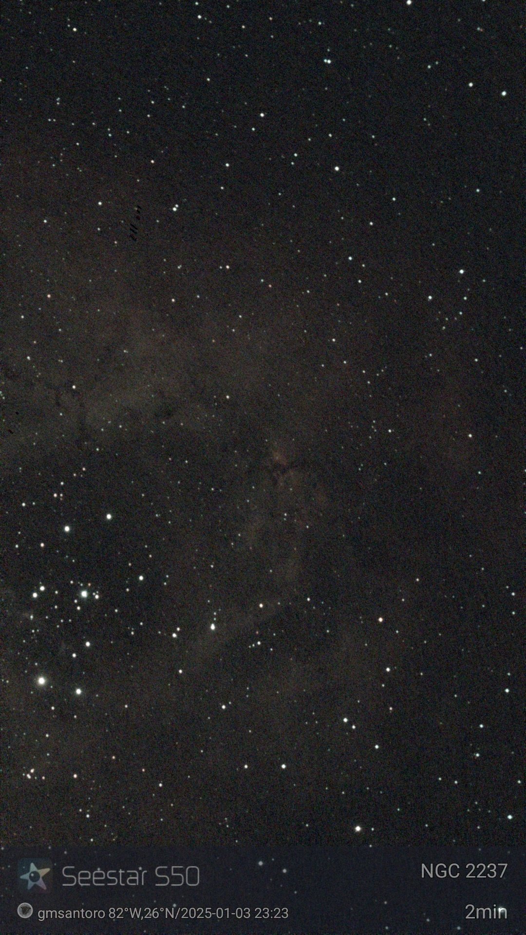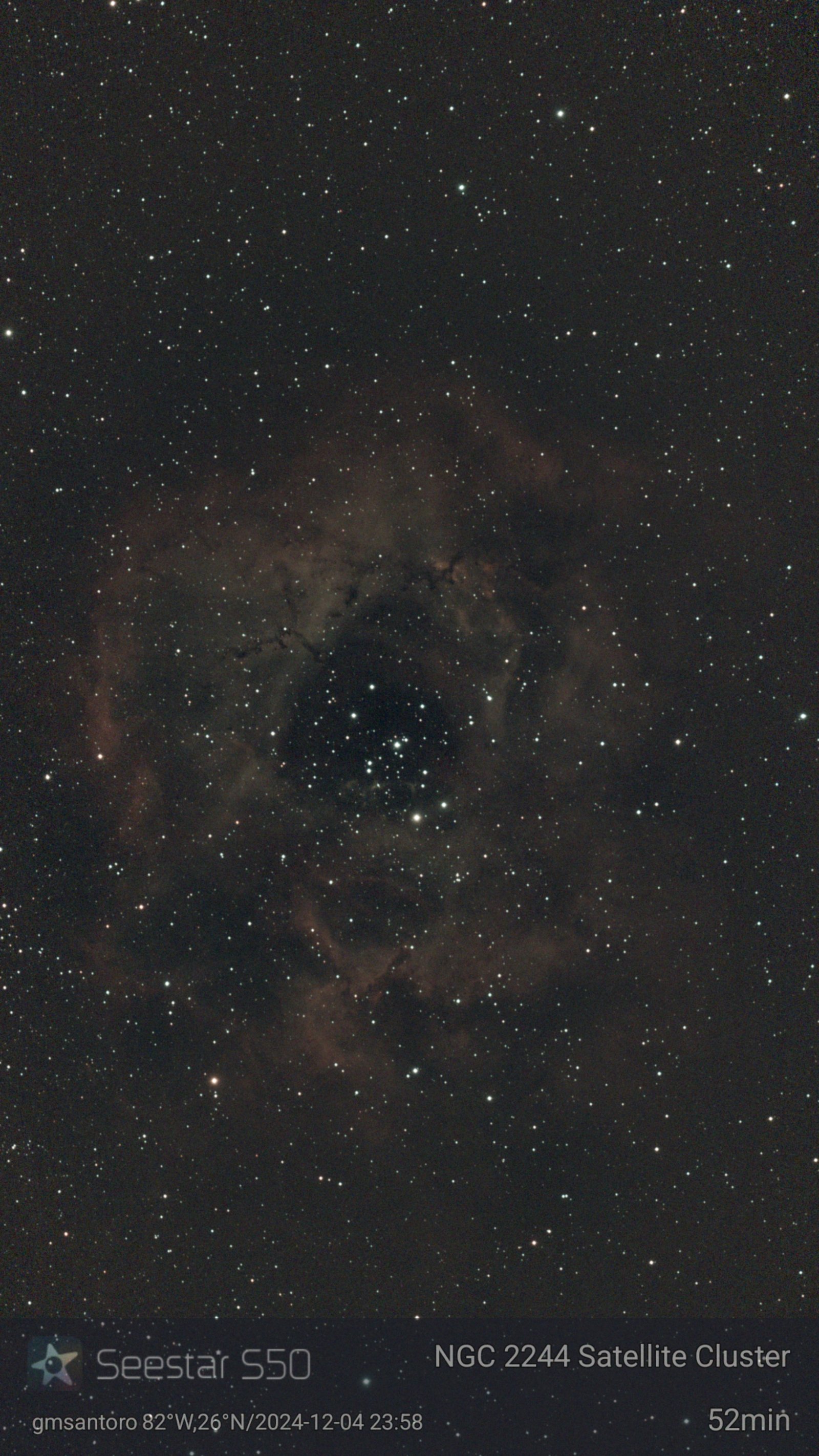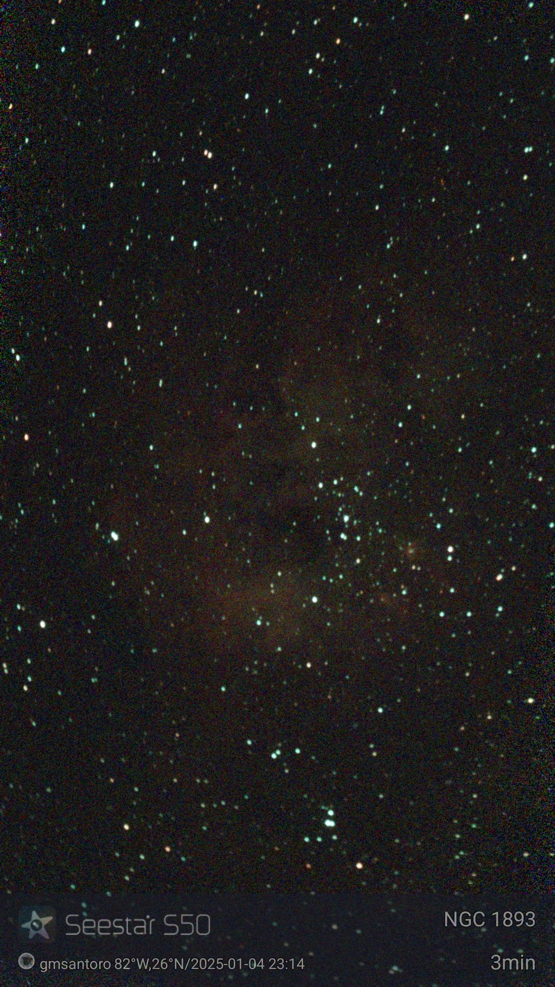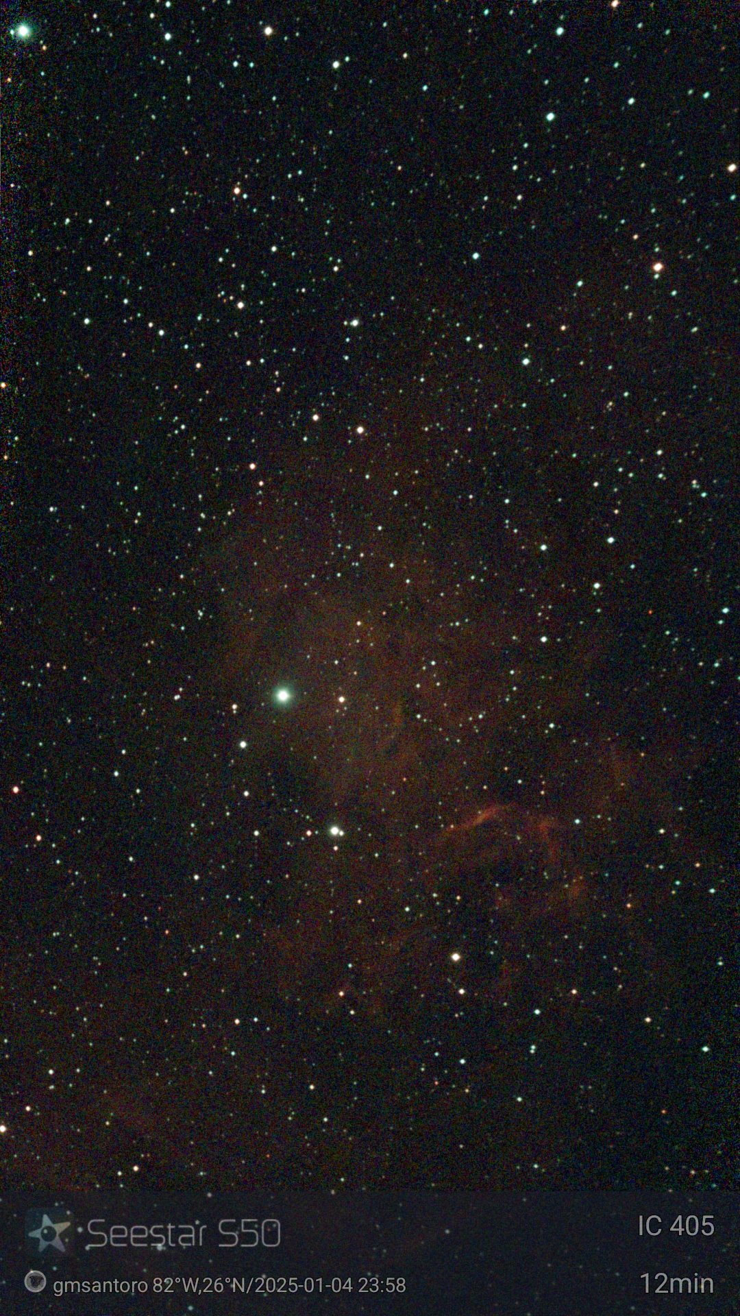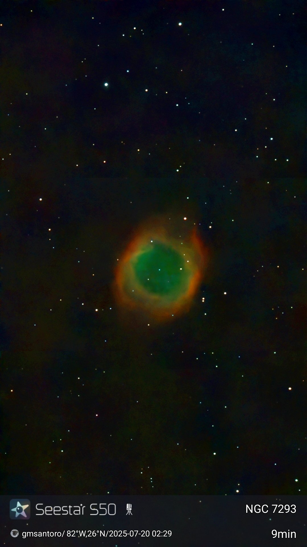 These are other pictures taken with my Seestar S50. It is an amazing robotic telescopic camera. I have done no post-processing unless noted otherwise. I have not included the Messier objects, since they are on another page. Most pictures have the name of the object, exposure time, and my name and location. Feel free to copy for any non-commercial purpose.