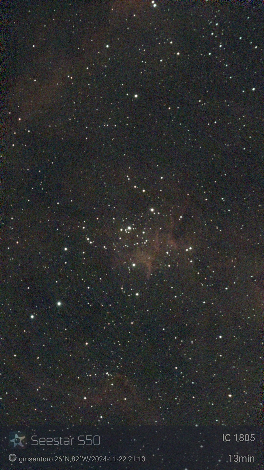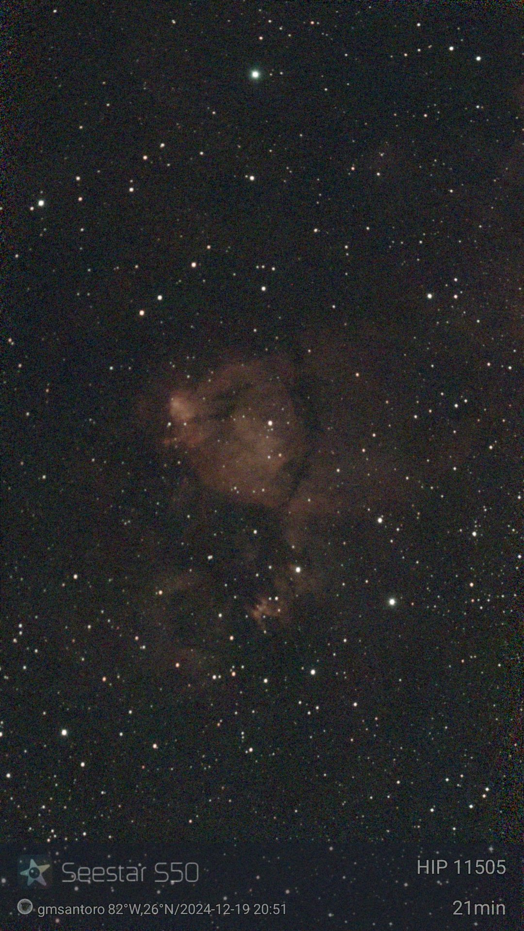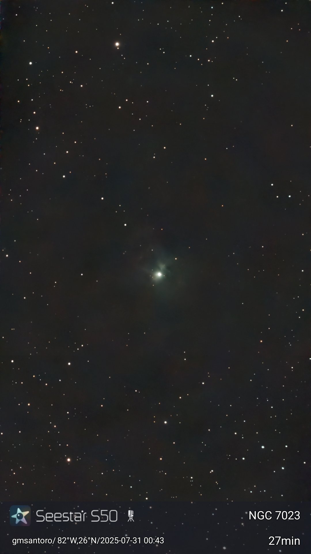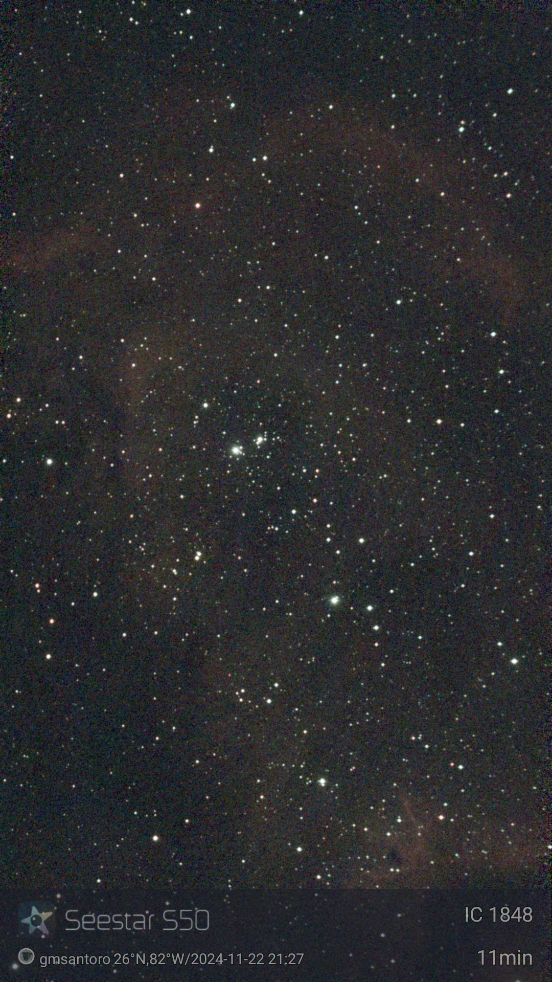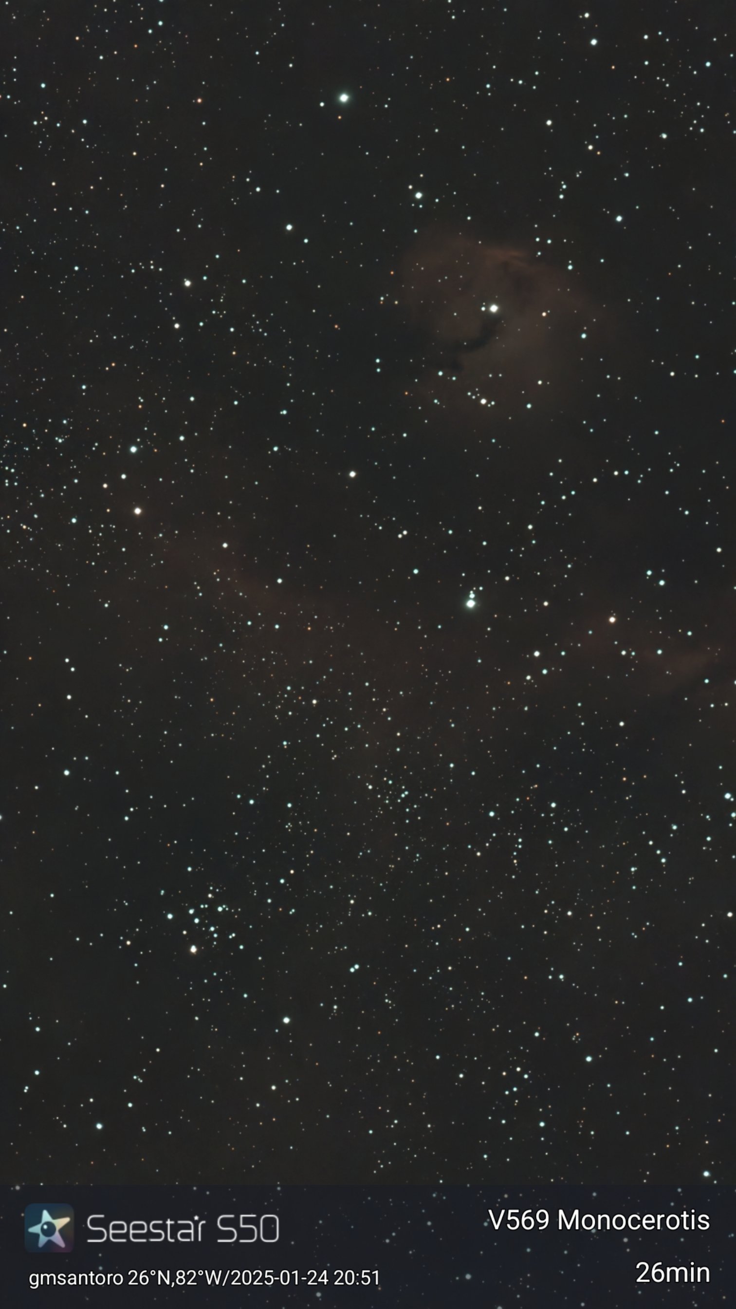 These are other pictures taken with my Seestar S50. It is an amazing robotic telescopic camera. I have done no post-processing unless noted otherwise. I have not included the Messier objects, since they are on another page. Most pictures have the name of the object, exposure time, and my name and location. Feel free to copy for any non-commercial purpose.
