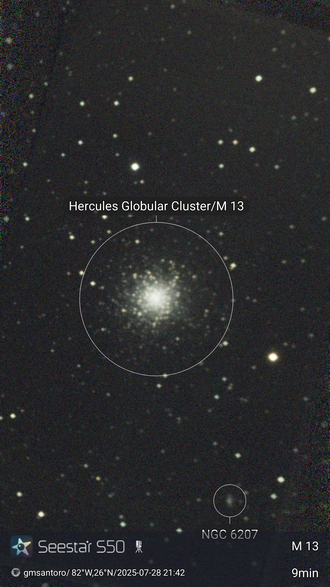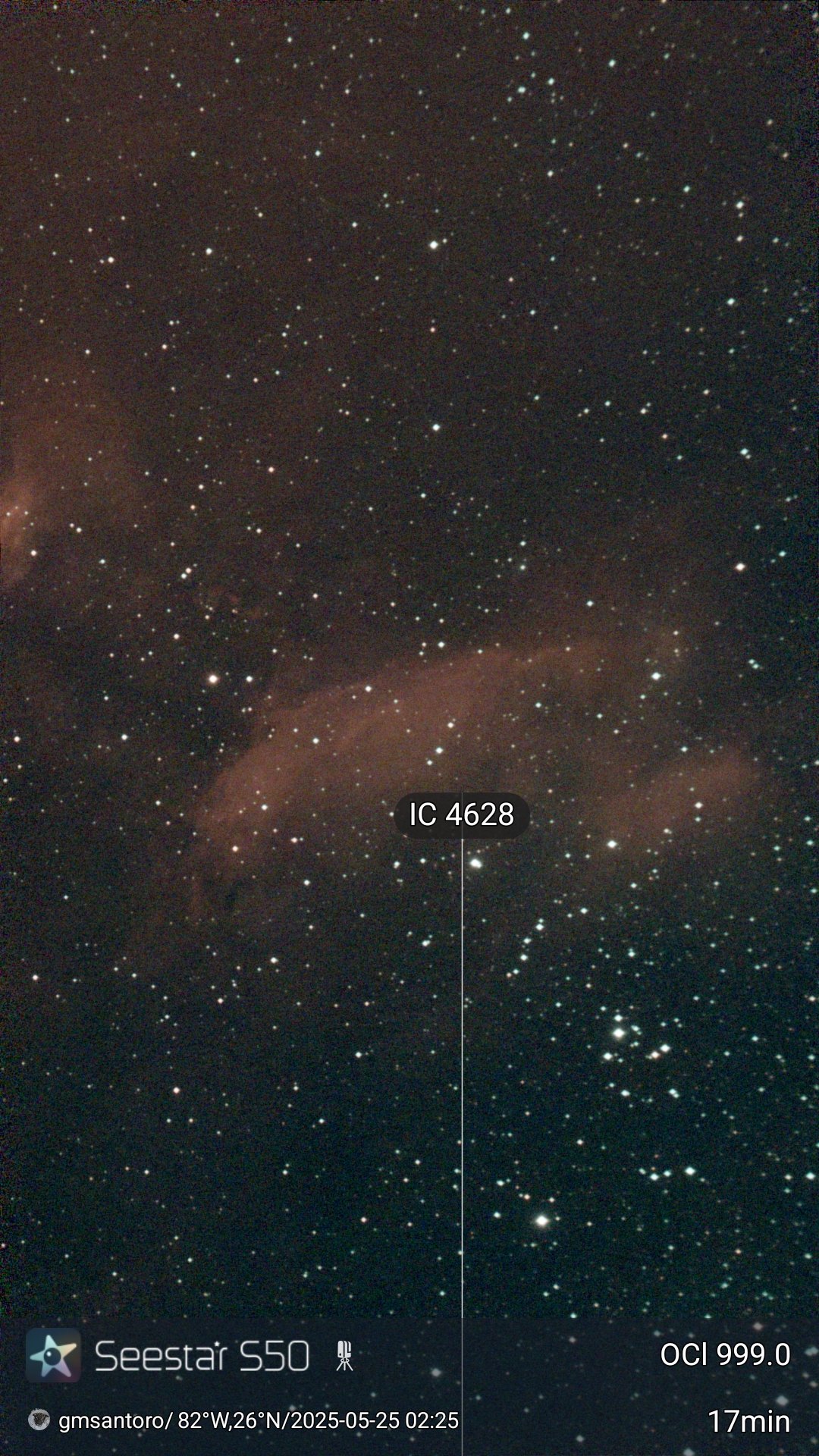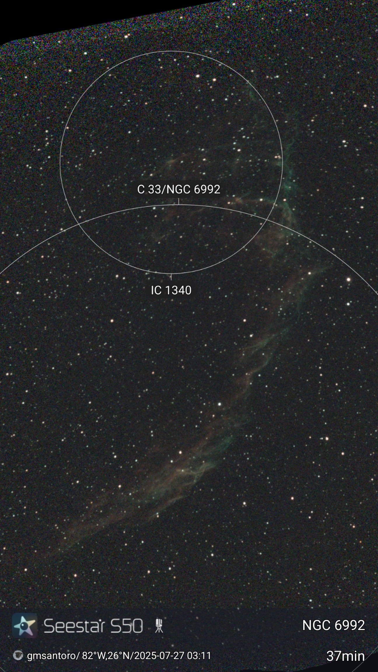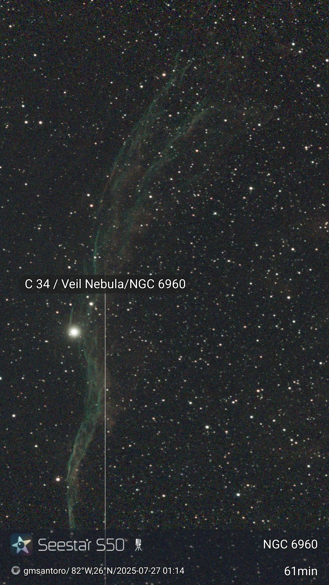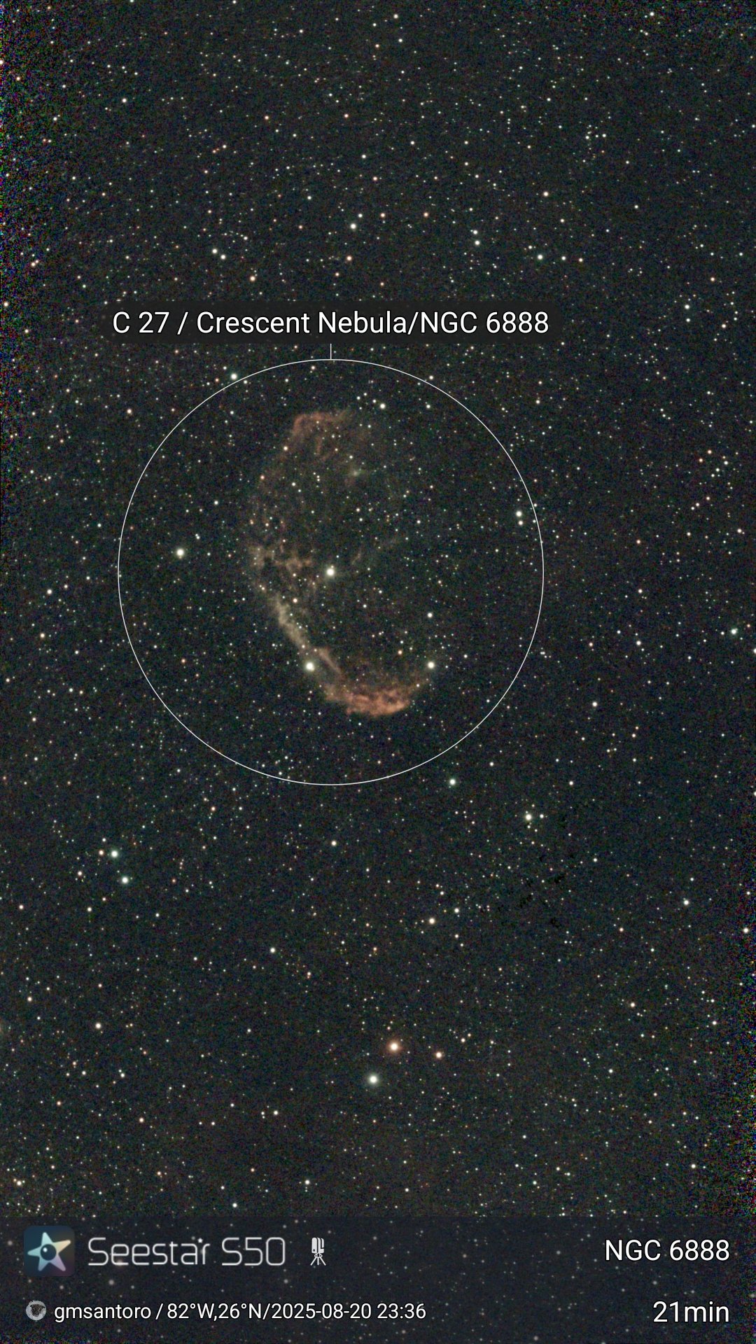 These are other pictures taken with my Seestar S50. It is an amazing robotic telescopic camera. I have done no post-processing unless noted otherwise. I have not included the Messier objects, since they are on another page. Most pictures have the name of the object, exposure time, and my name and location. Feel free to copy for any non-commercial purpose.