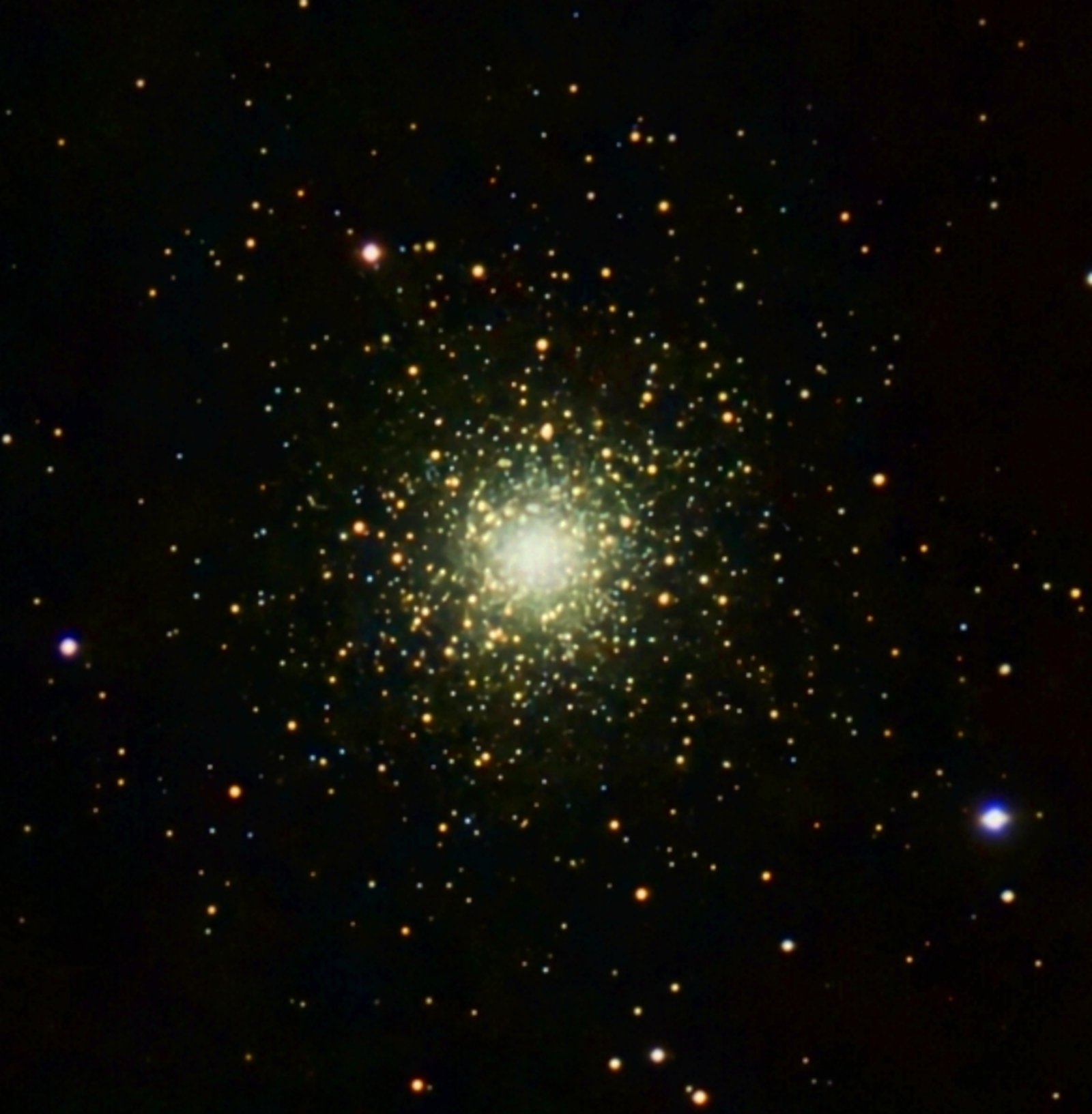 Messier 3 is one of the Milky Way’s great globular clusters, a densely packed spherical swarm of hundreds of thousands of ancient stars located in Canes Venatici. Through a telescope it appears as a bright, concentrated ball of light, and with enough aperture it resolves into countless pinpoint stars toward the edges. M3 is also famous for containing many variable stars, and it stands as a beautiful example of the old stellar populations that orbit far out in our galaxy’s halo.