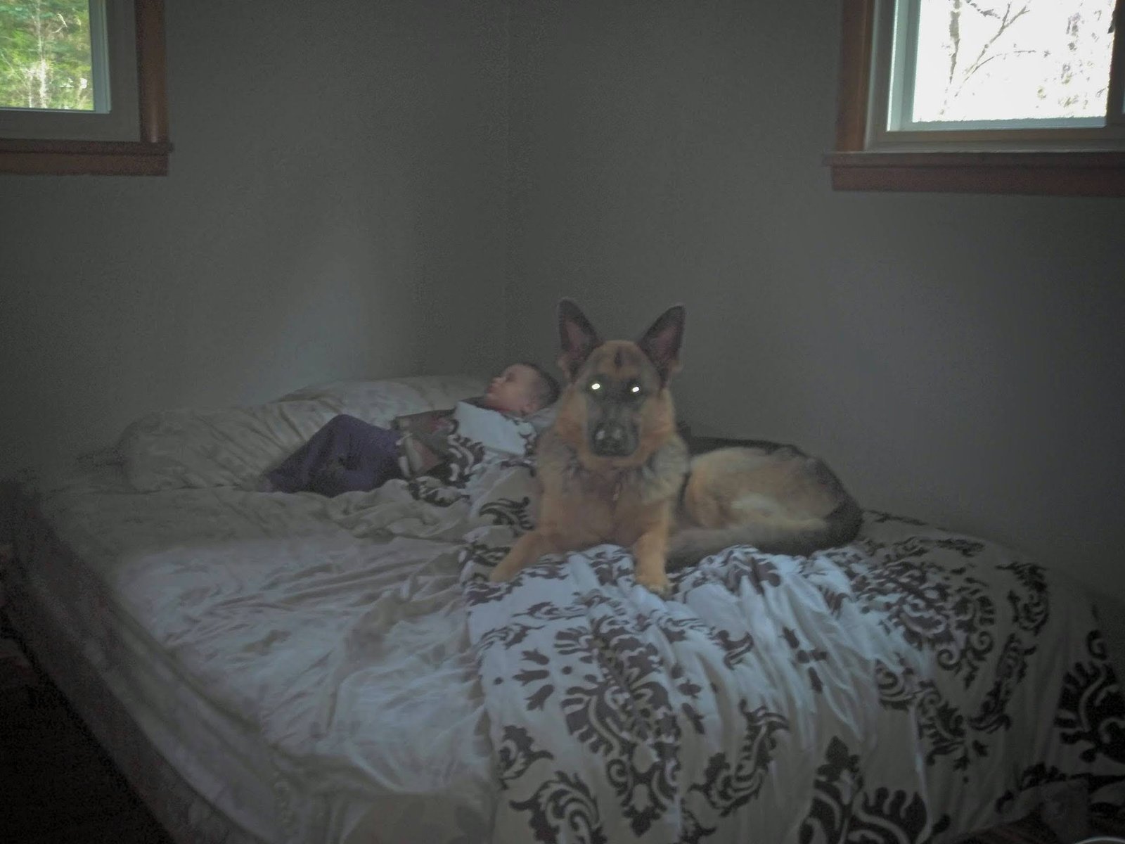 When we first brought Logan to meet Thor we were a but worried. but he adopted him as he has done with our our grandbabies. Protective instinct.