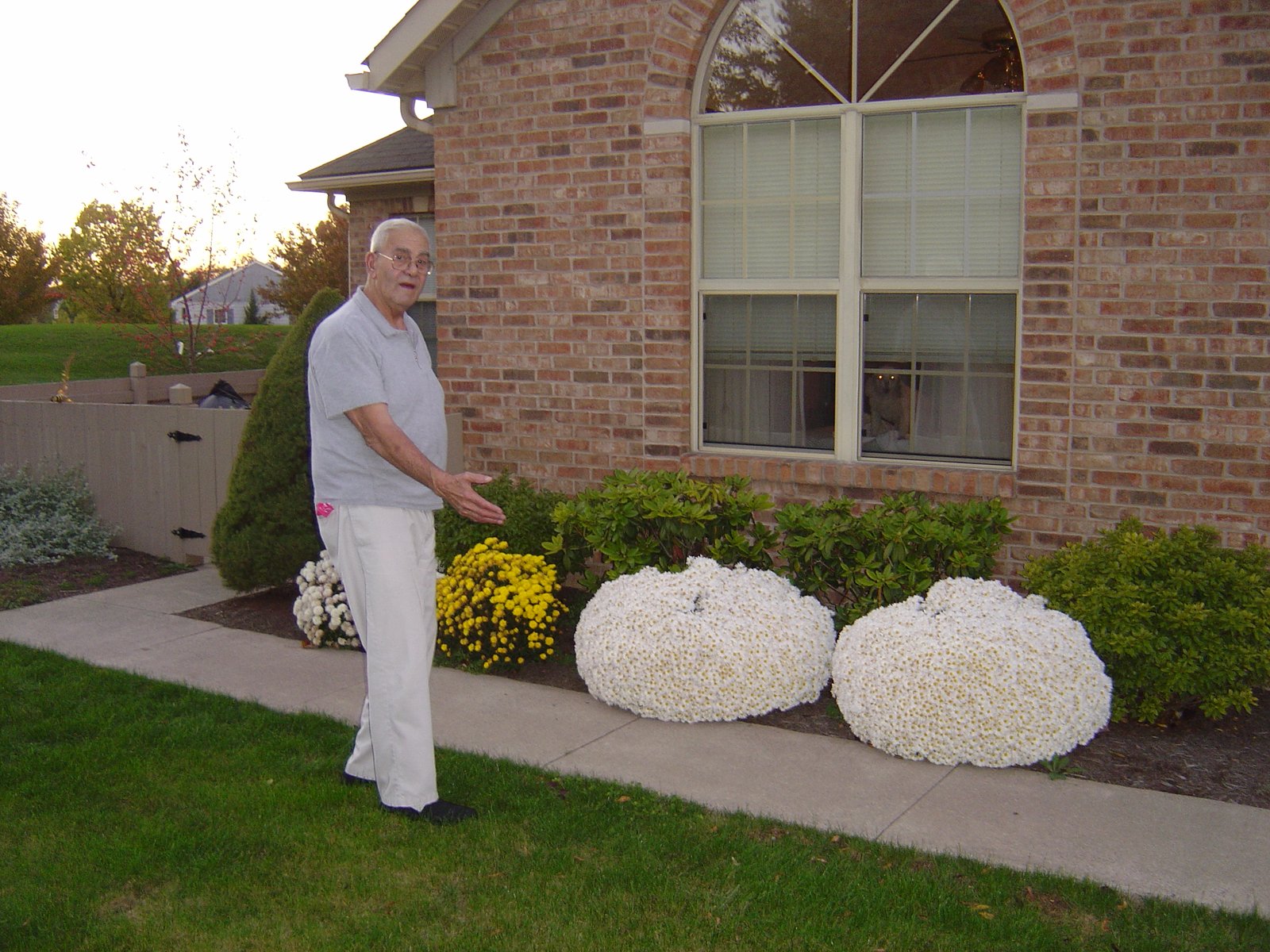 Dad at his State College home, proud of his flowers! he also snuck a tomatoe plant or two
