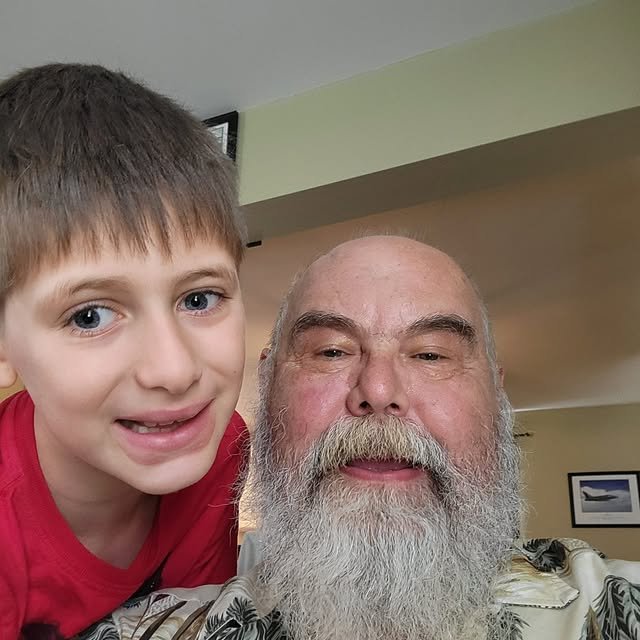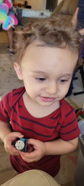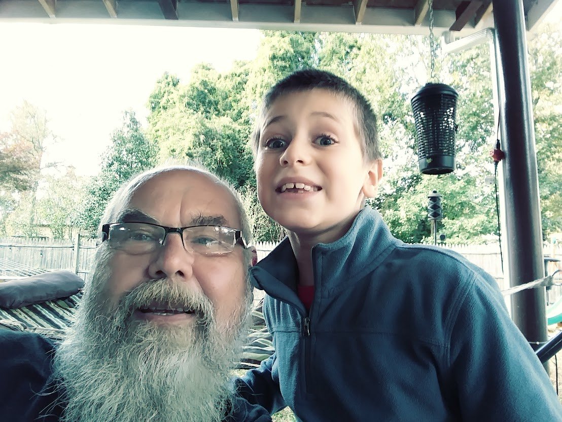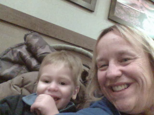 Me and grandson Connor. His hair is longer now and he looks like a little elf!