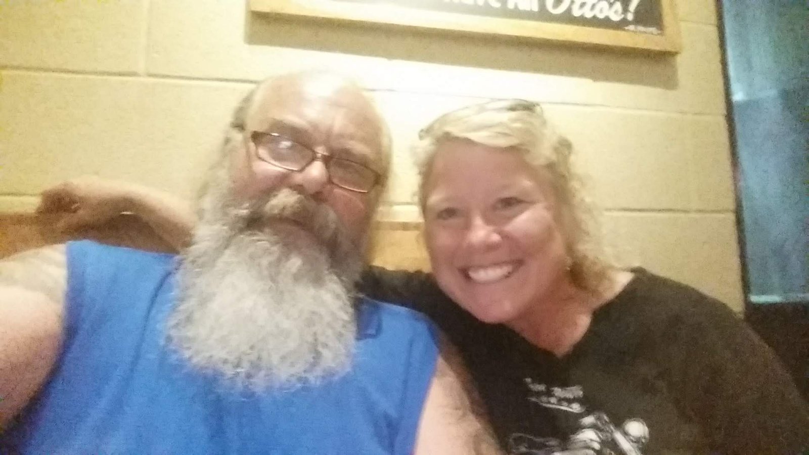 Travis and Heddy. We were at a restaurant and I made Heddy laugh so hard she spilled her drink!