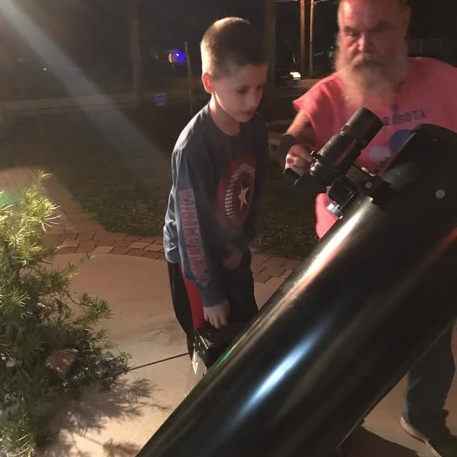 Getting the comet into view for my grandkids. Logan is The only family member I can talk to about astrophysics and other areas of science. I also play games with him and he has an amazing aptitude for building things. I suspect he will become an engineer.
