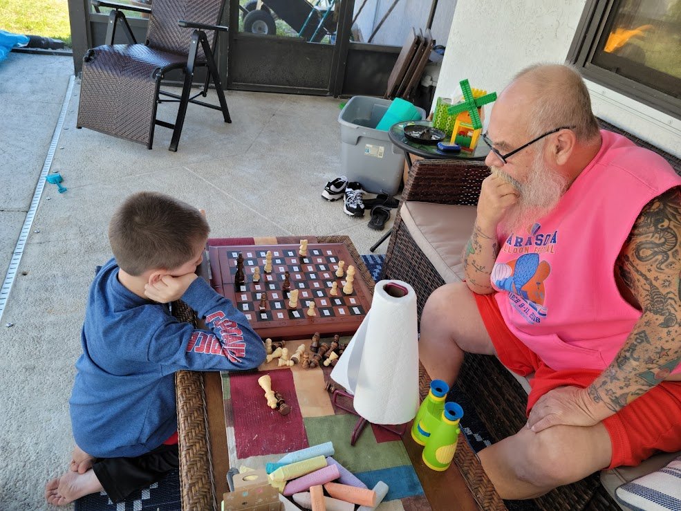 Grandpap playing chess with Chi.