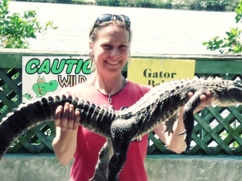Cassandra holding a baby gator at Babcock Farms.