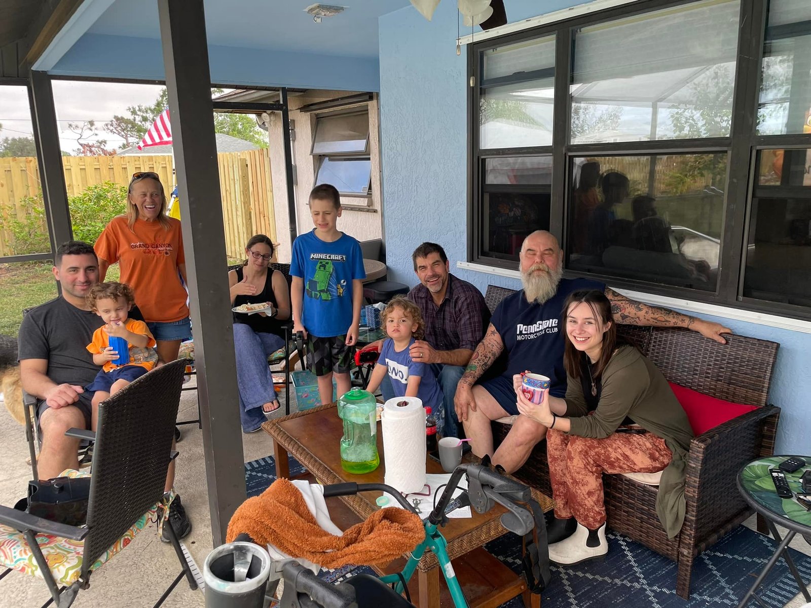Most of the family here. Joe, Connor, Suzi, Brandi, Travis, Felix me and Kelsey. Heddy is taking the pic while ZZ and Alice play inside. Chi and Susana are not here.