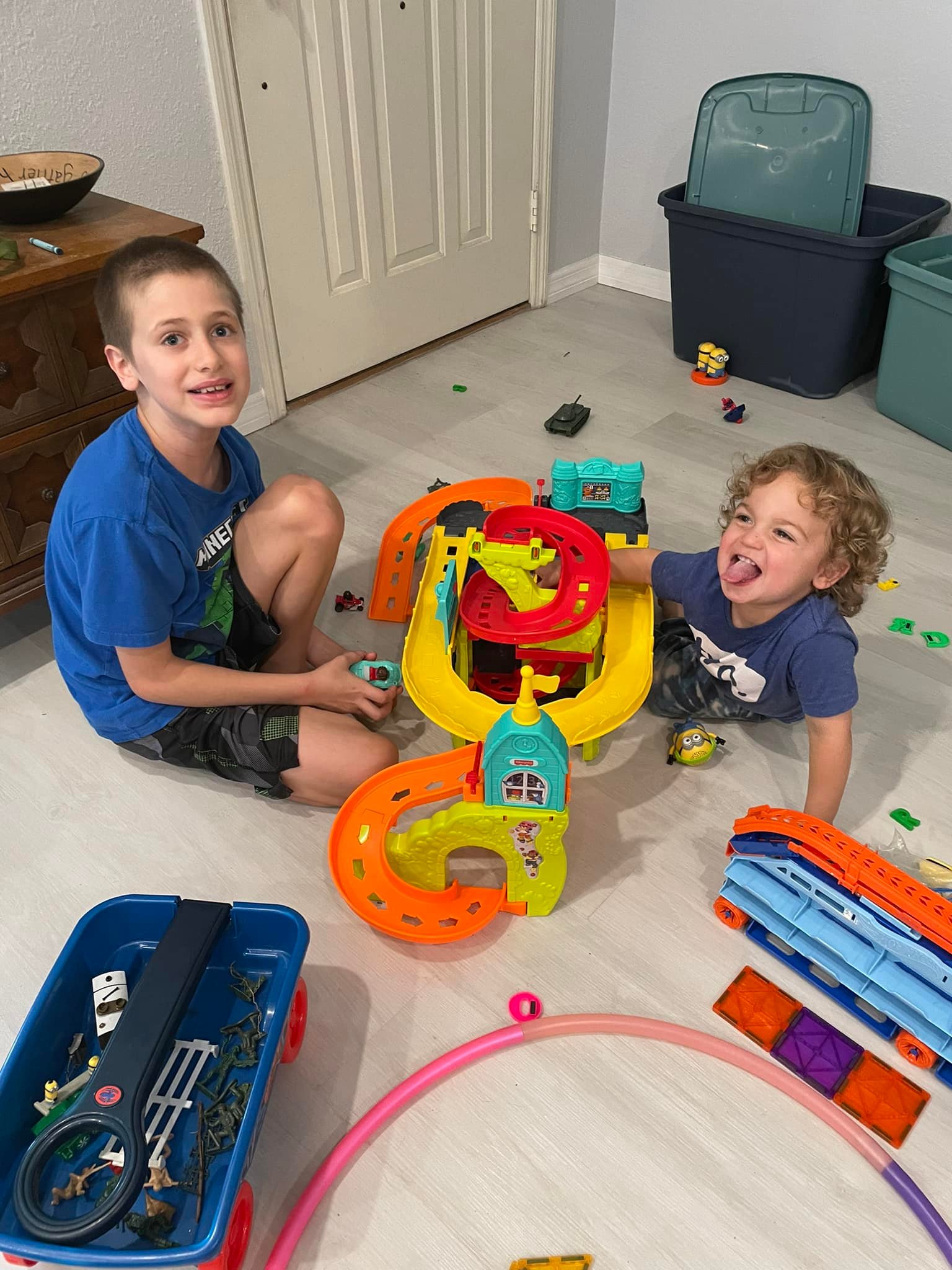 The kids decided to come down at the same time so The grandkids could finally meet.