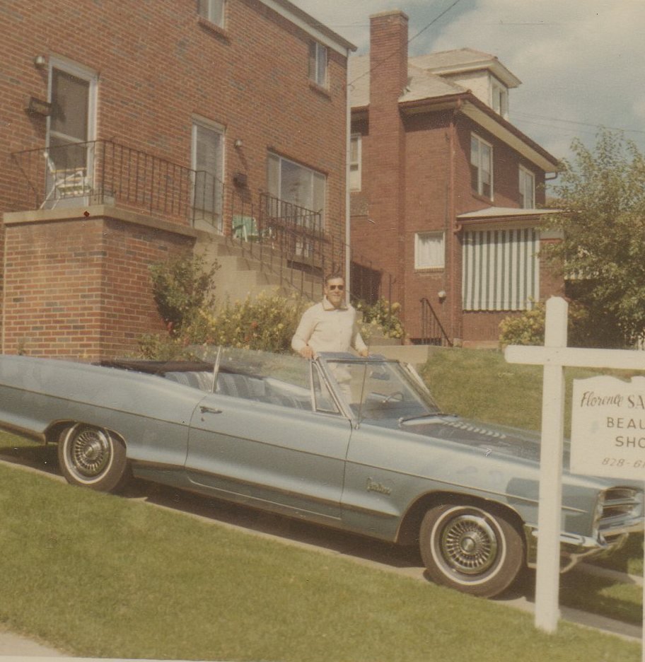 Dad and the Pontiac Convertible he had for a short whlie when I was a kid. Mom had a beauty salon in the garage. That is the front porch of our Blawnox duplex.
