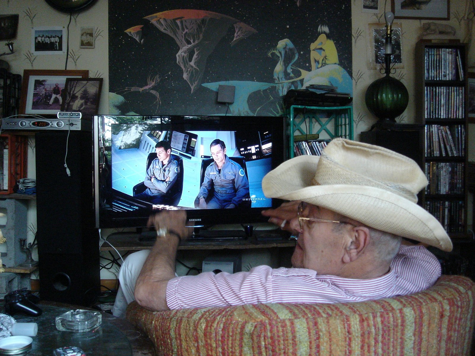 When Dad was in Elmcroft, I occasionally took a laptop to him, and a cell-phone based modem, to let him SKYPE with his grandkids and great grandkids in Texas and Denver. He is talking with Melissa in texas.