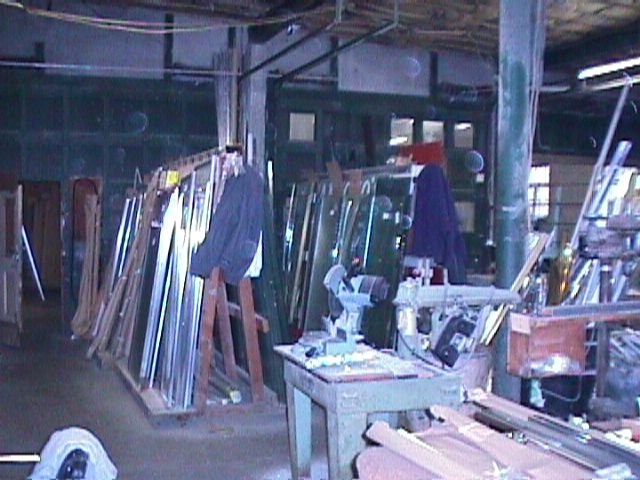 Inside Dad's shop. Machinery for cutting mirrors and aluminum frames for sliding doors or batroom tub/shower doors. They worked closely with the North Suburban Homebuilders Association, which Frank was President of for many years. They tried their hand at homebuilding, made a bunch of money, then got out of the game before the housing crunch of the 80s.