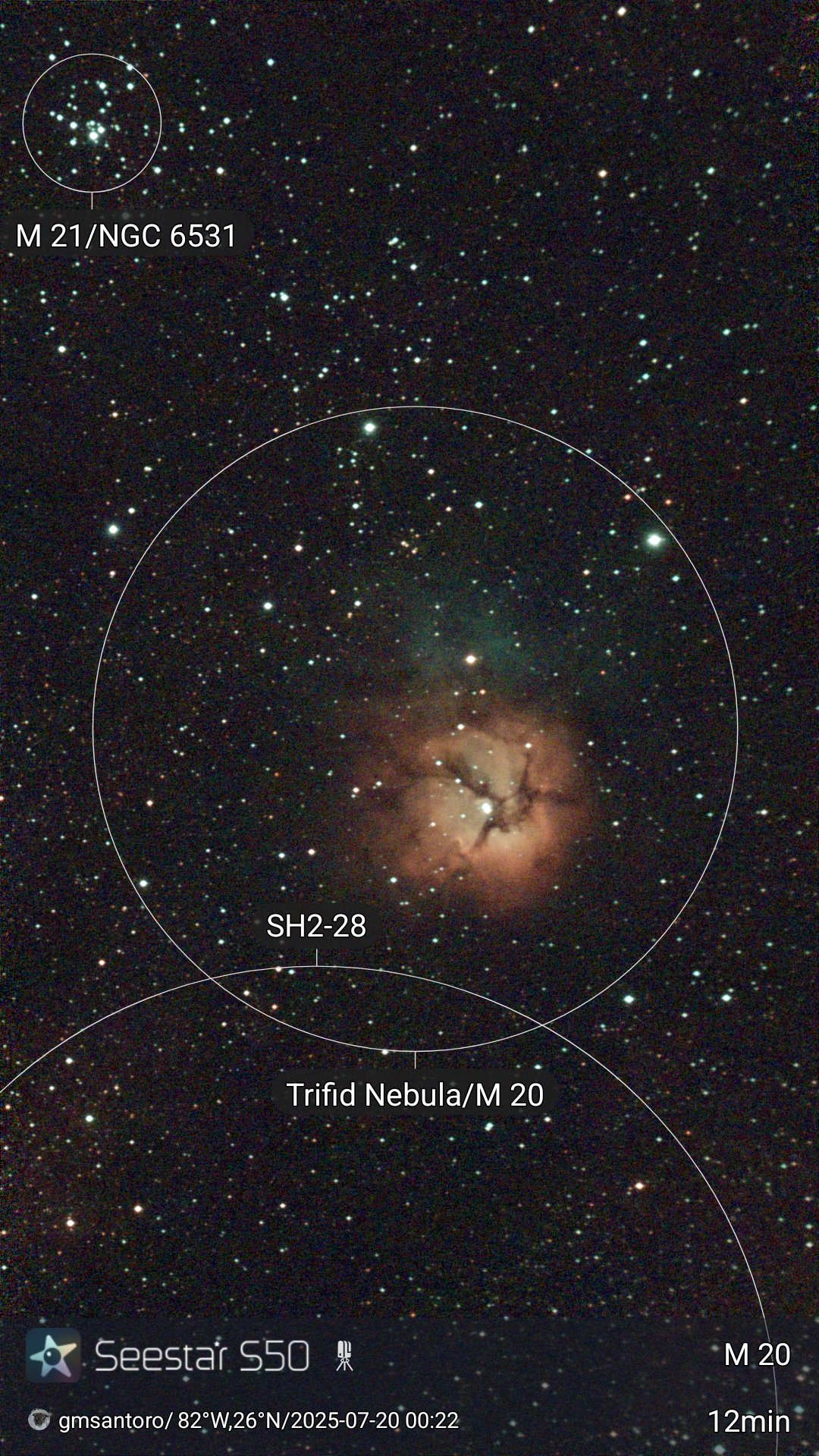 Type: Emission/reflection nebula with open cluster (Trifid Nebula)